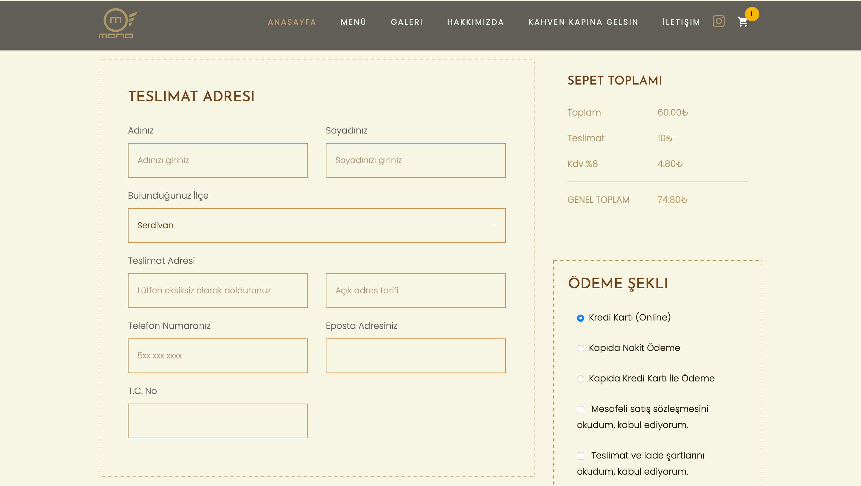 With the slogan of "Bring your coffee to your door", we have prepared an infrastructure where customers can order coffee online.